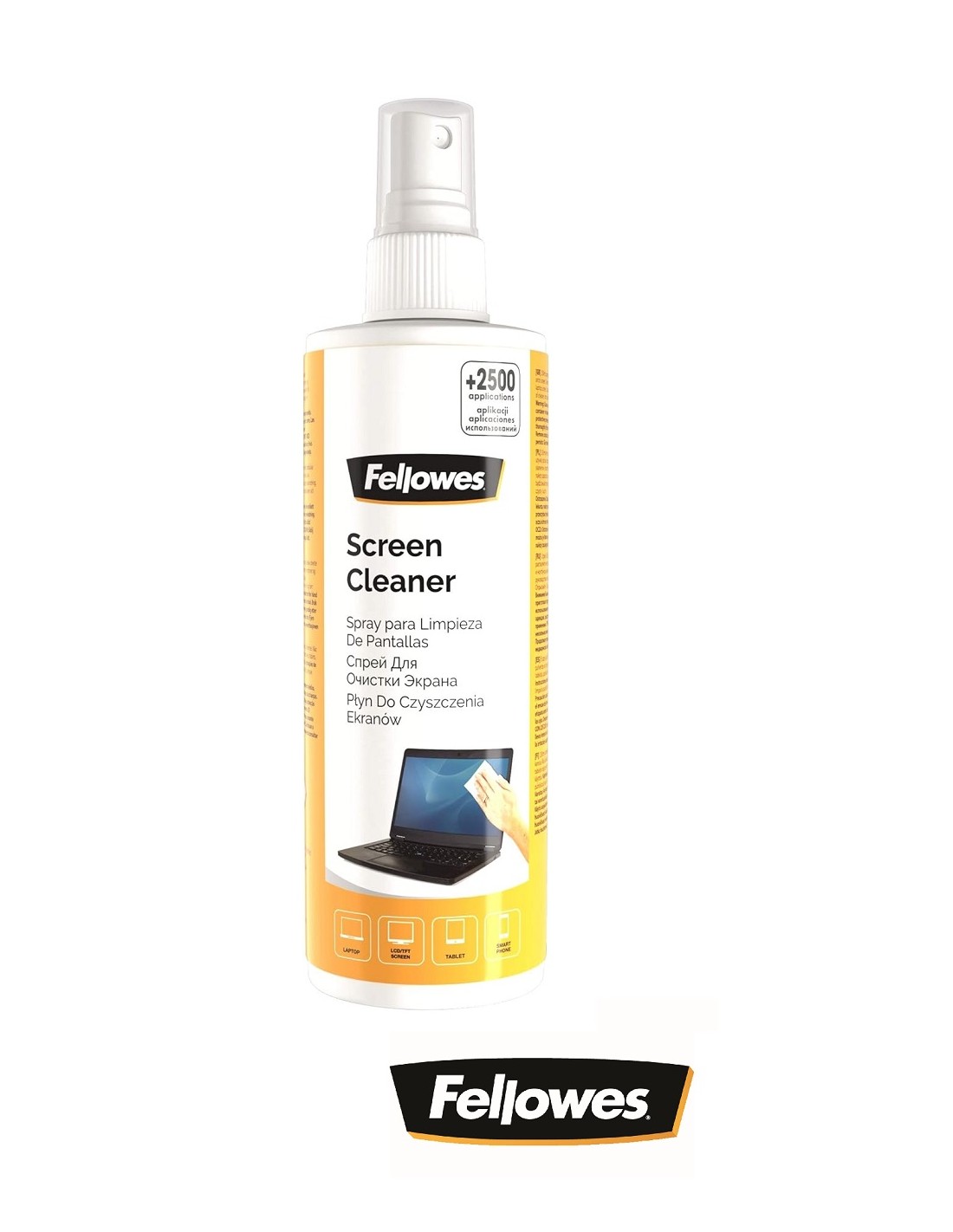 Spray limpiador de pantallas sin alcohol.