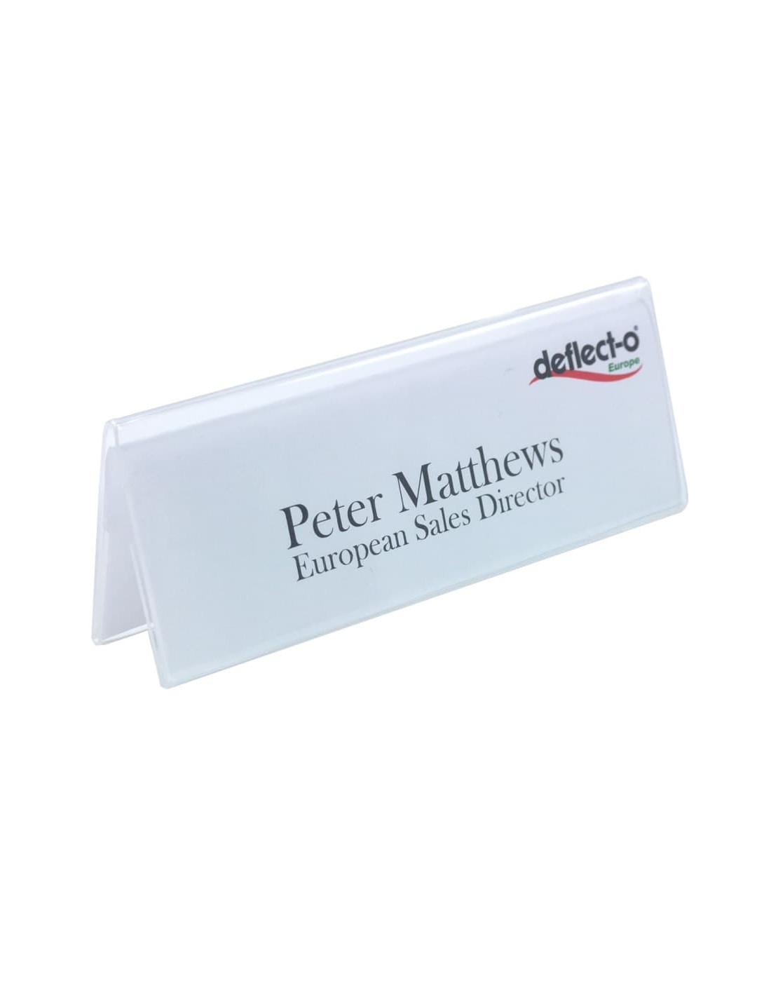 DEFLECTOPortanombres sobremesa de metacrilato transparente.