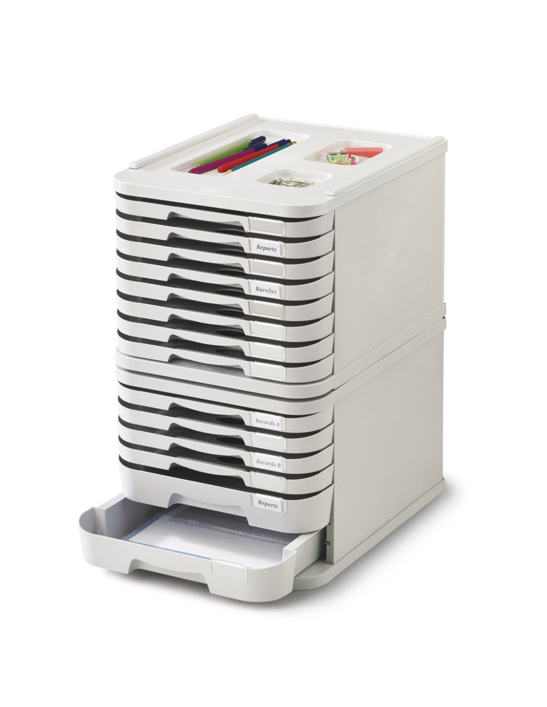 Módulo con 8 cajones de 2,5 cm para guardar documentos