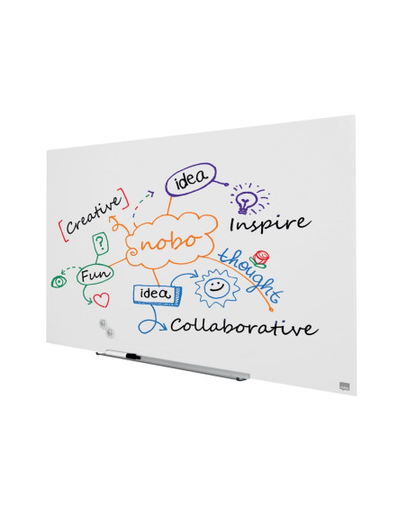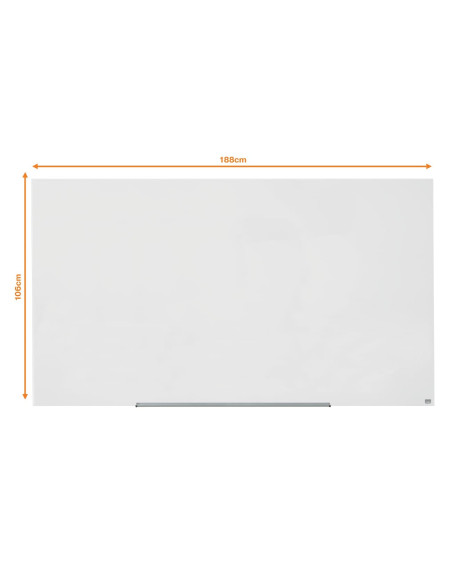 Pizarra blanca magnética de cristal. Alta capacidad de borrado, lo que permite que no queden manchas ni trastros tras el uso. Sistema Invisa Mount que facilita la instalación con fijaciones detrás de la pizarra. MEDIDA 1883 x 1059 x 22 mm.