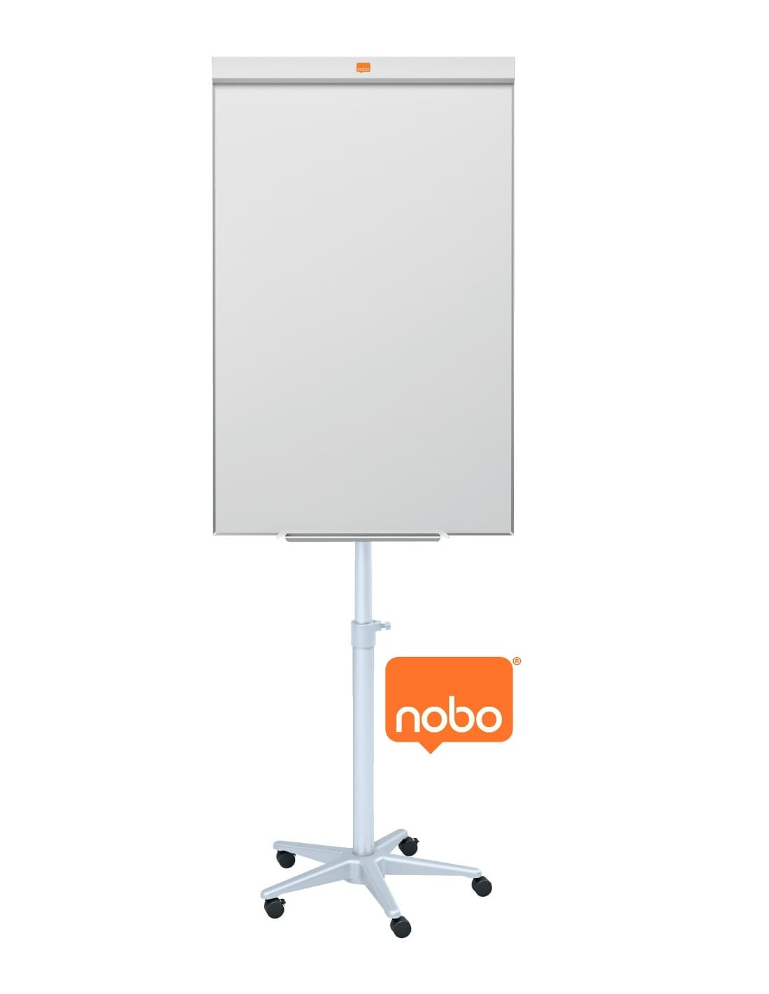 Pizarra blanca magnética con bandeja para rotuladores en la parte inferior del marco.