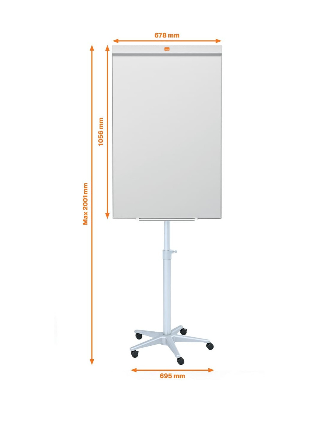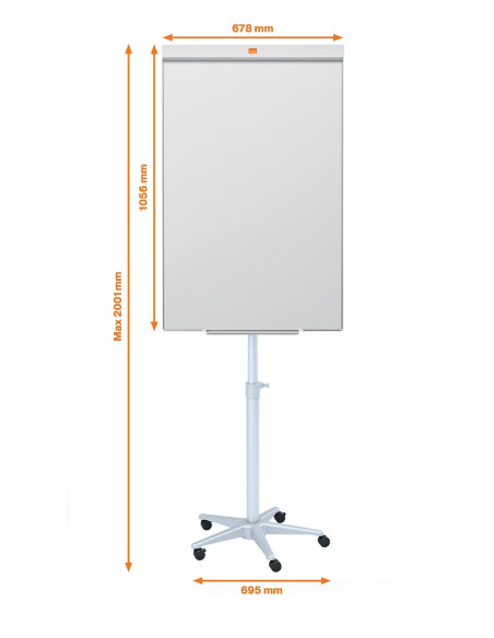 Base regulable en altura y con ruedas para facilitar el desplazamiento.