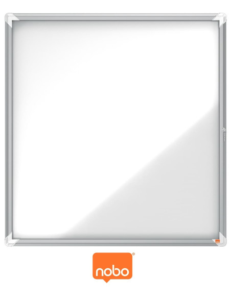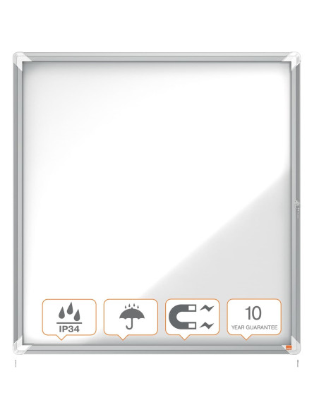 Vitrina para exteriores con superficie blanca magnética.