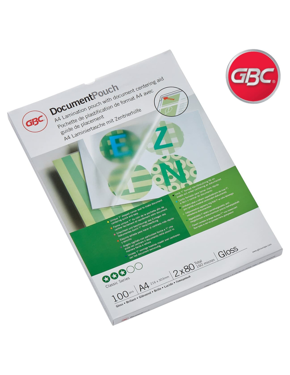 Aptas para todo tipo de plastificadoras por calor, 2 x 80 micras con acabado brillante.