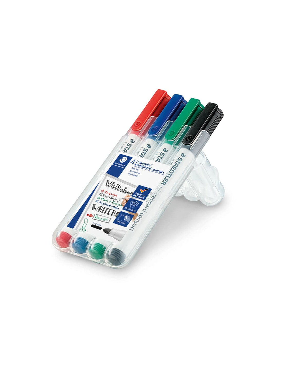 Estuche de plástico con 4 rotuladores para pizarra blanca STAEDTLER LUMOCOLOR WHITEBOARD 341 colores surtidos.