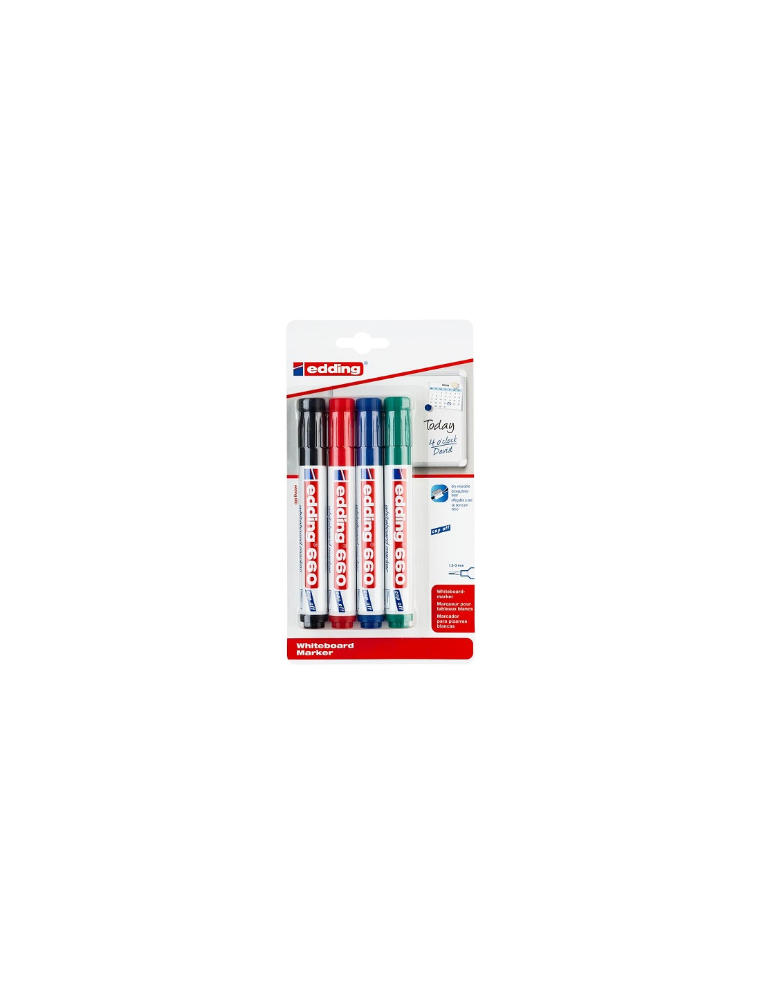 Set con 4 rotulador pizarra blanca EDDING 660 colores SURTIDOS.