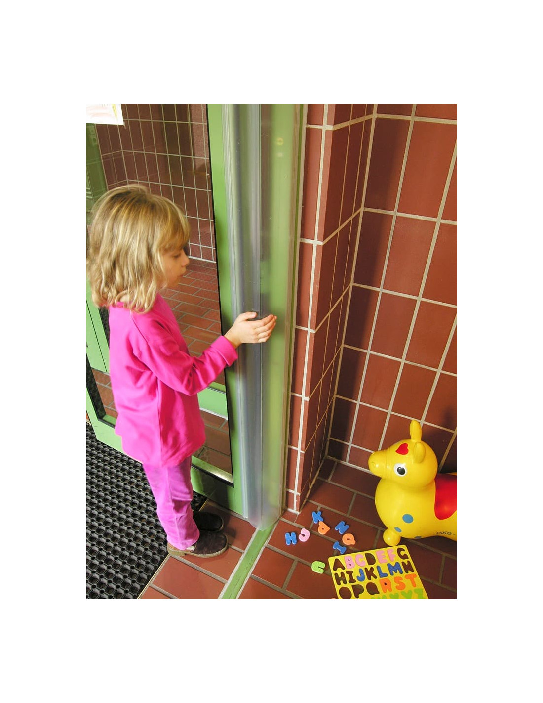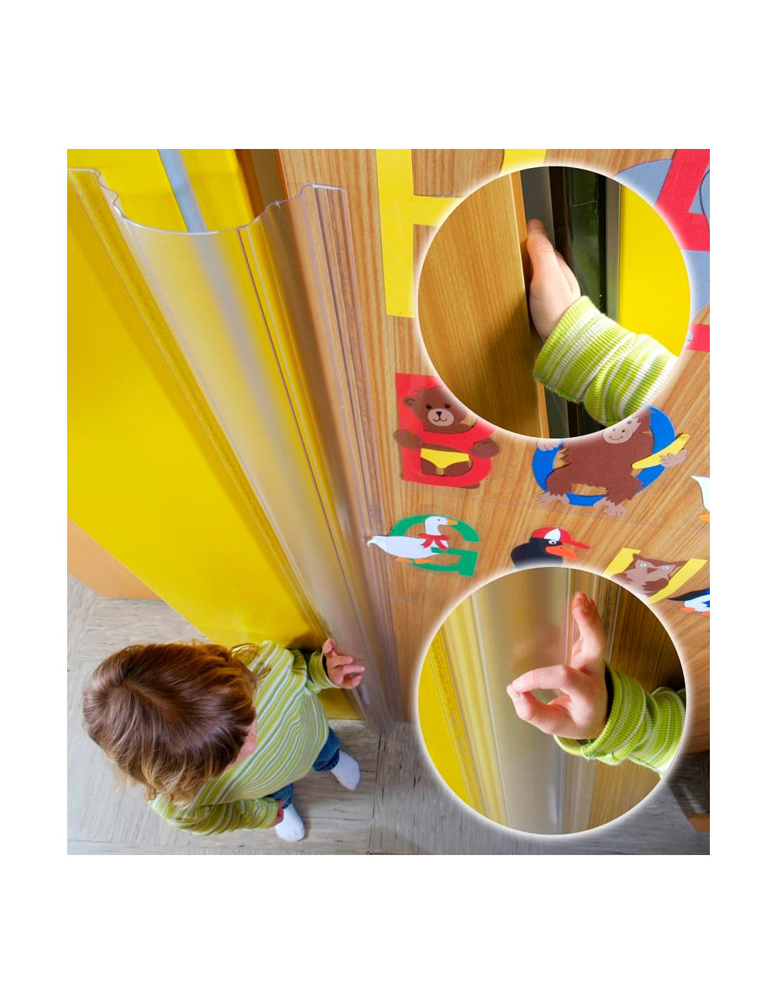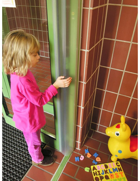 Protector salvadedos transparente para puertas.