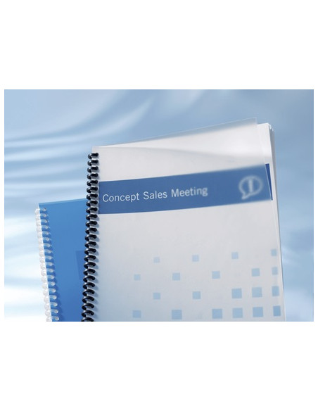 Portadas para encuadernación resistente y semitransparente mate. Las portadas de PP son reciclables lo que les hacen más respetuosas con el medioambiente. Grosor de 300 micras en formato A4. Paquete 100 uds.