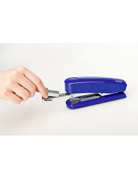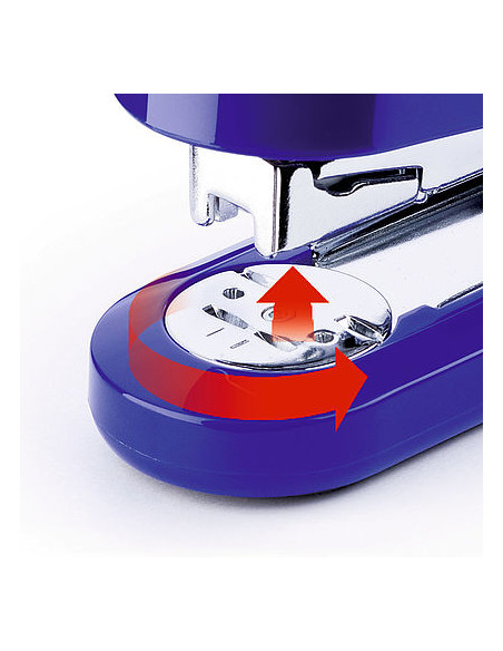 Grapadora de carga frontal. Opción de grapado abierto, cerrado o clavado. Fabricada en metal y recubierto en plástico de color brillante. Capacidad de grapado de 40 hojas de papel 80 gm. GRAPAS 246 - 248 - 266 - 268 Color negro