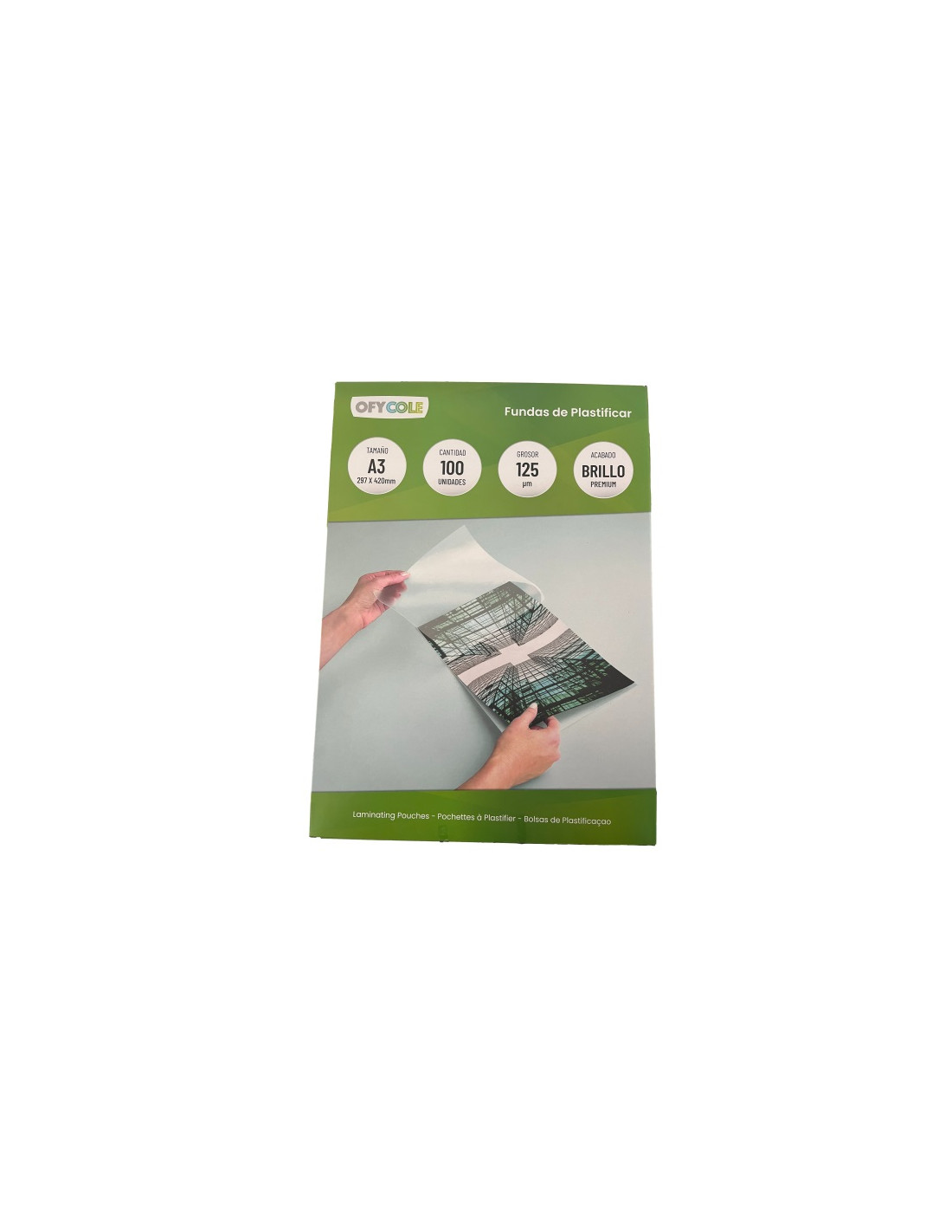 Caja cartón con 100 bolsas de plastificación, resistentes al agua.