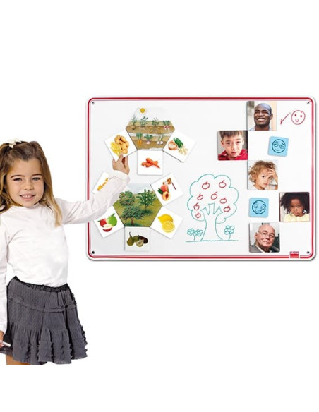 Permite escribir y jugar con las fichas magnéticas.