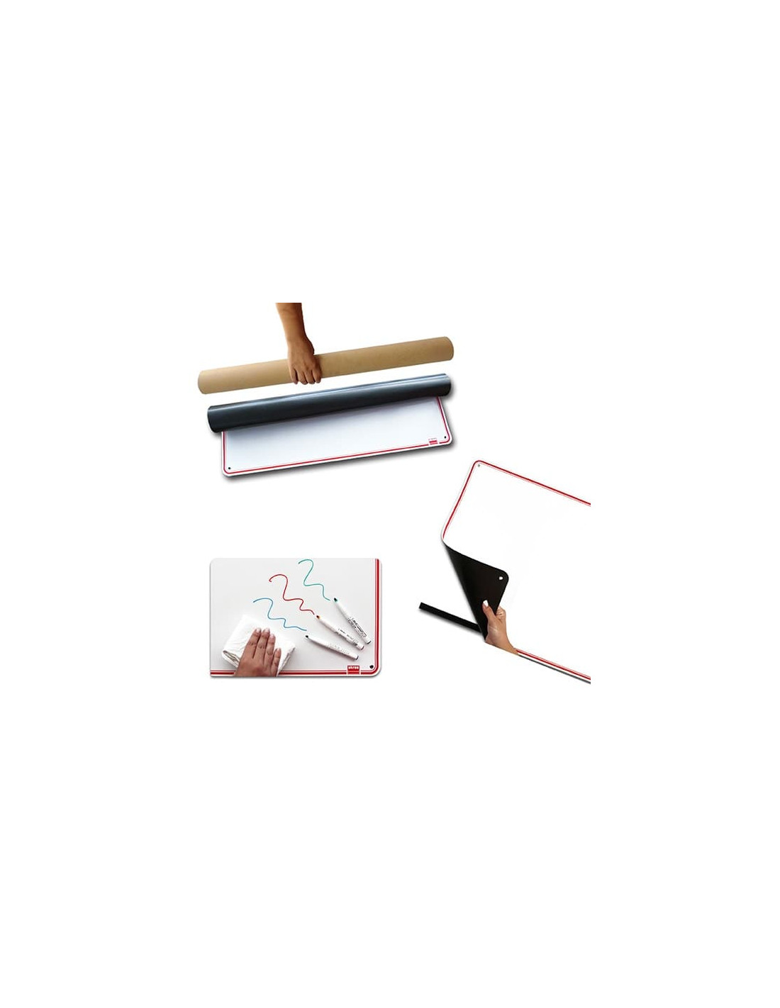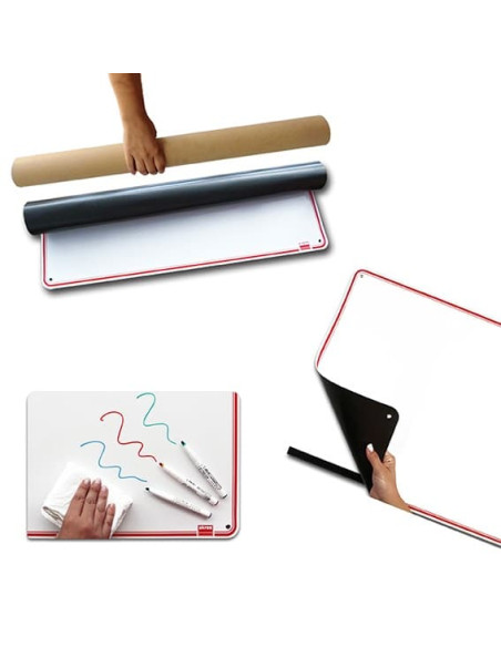 Incluye pizarra enrollable de 70 x 50 cm y 4 bandas de imán.