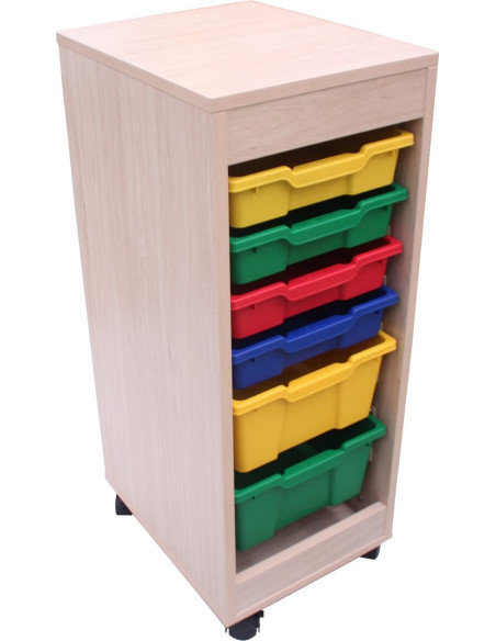 Mueble abierto con una columna de cubetas con acceso por