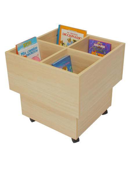 Cubo de almacenaje para libros, accesible desde la parte superior.