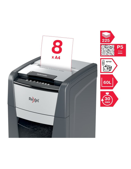 Destruye hasta 225 hojas de papel A4 (80 gm) de una