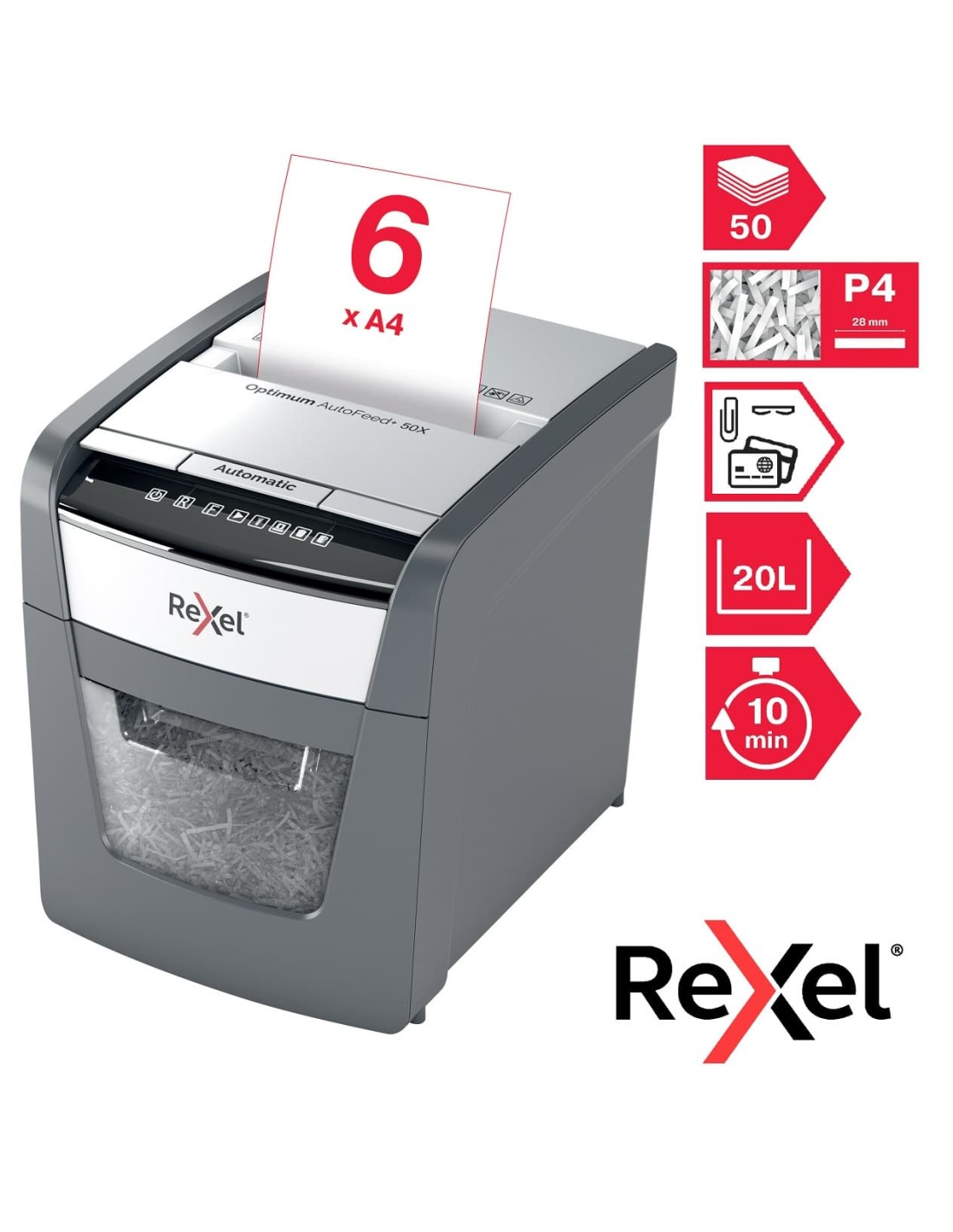 Destruye hasta 50 hojas de papel A4 (80 gm) de una sola
