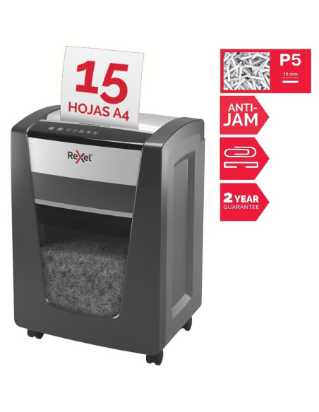 Destruye hasta 15 hojas de papel A4 (80 gm) de forma