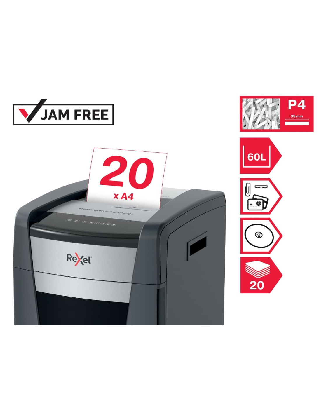 Destruye hasta 20 hojas de papel A4 (80 gm) de forma
