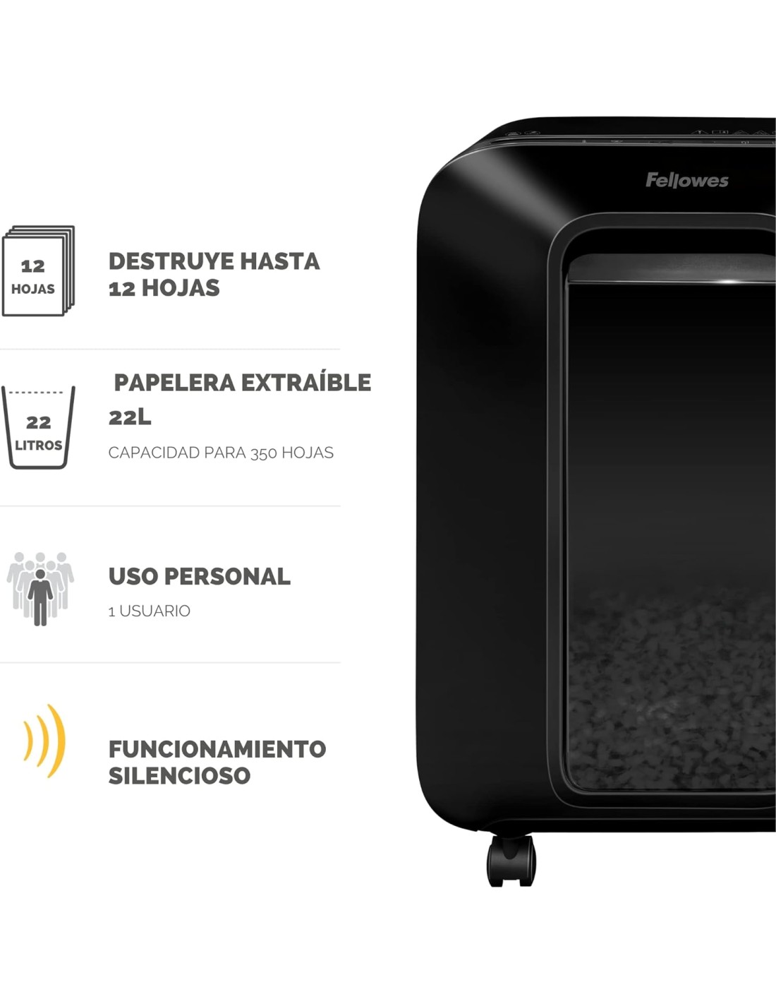 Destruye hasta 12 hojas de papel A4 ( 70 g/m²) de forma manual.