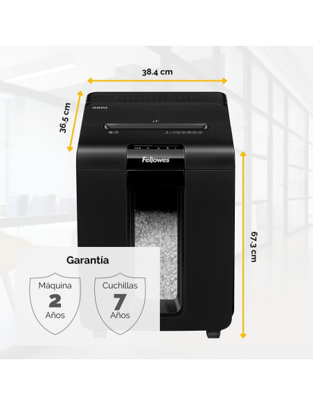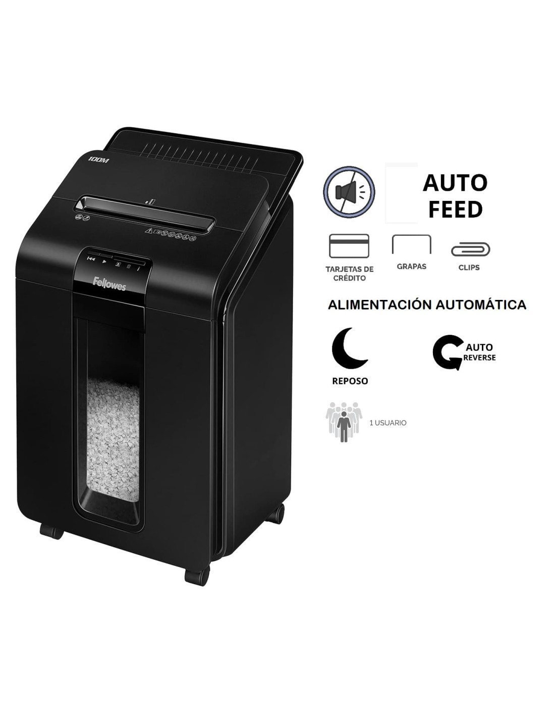 Destruye hasta 10 hojas de papel A4 ( 70 g/m²) de forma manual y 100 de modo automático.1