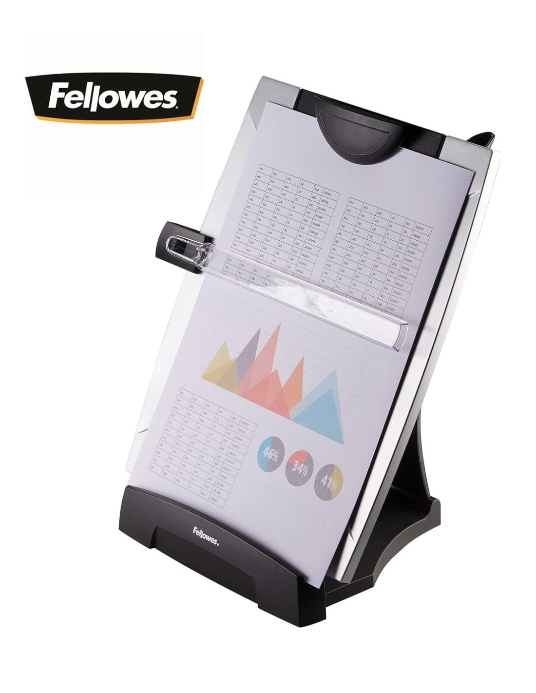 Atril tres en uno para documentos, memo board y clipboard.