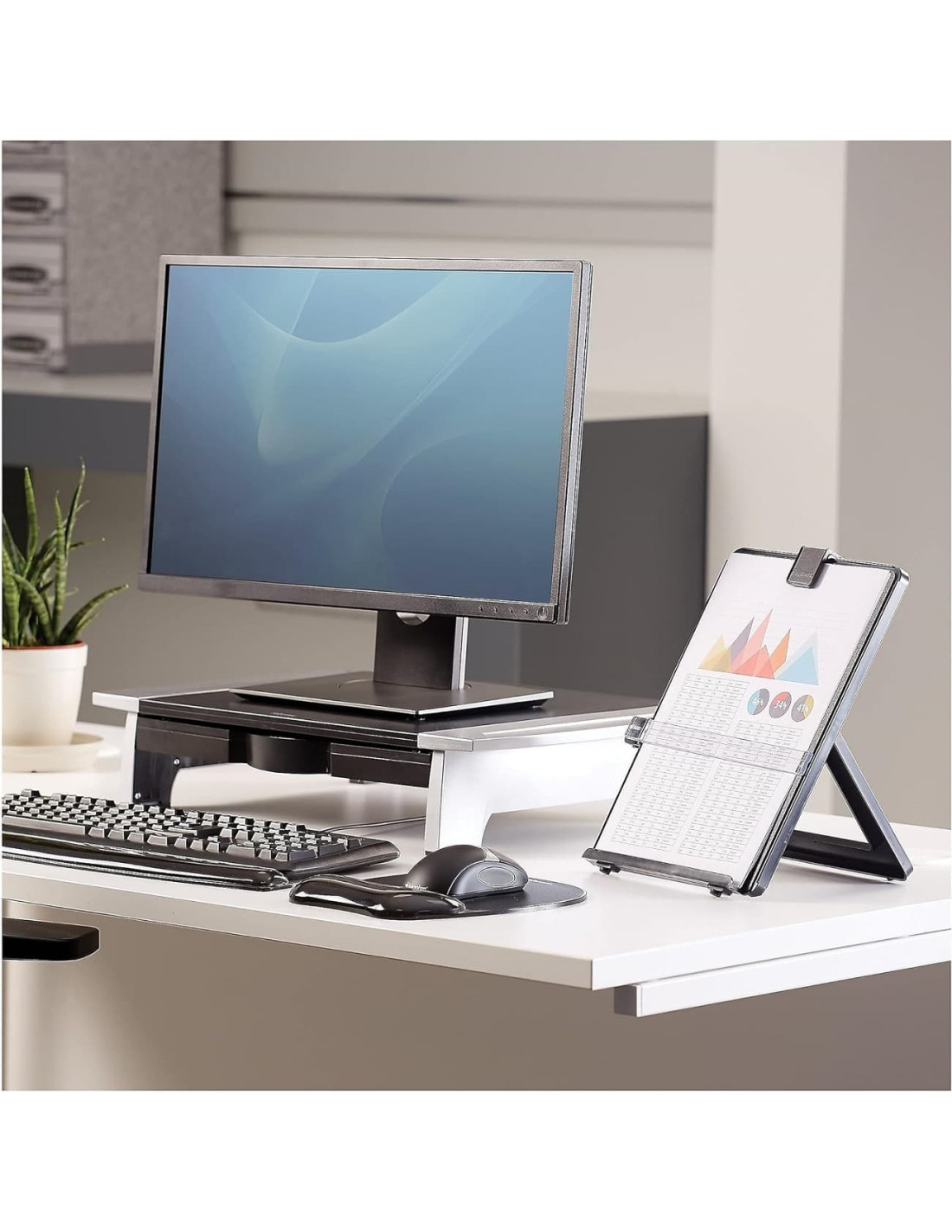 Atril con guía extraíble para resaltar el texto.