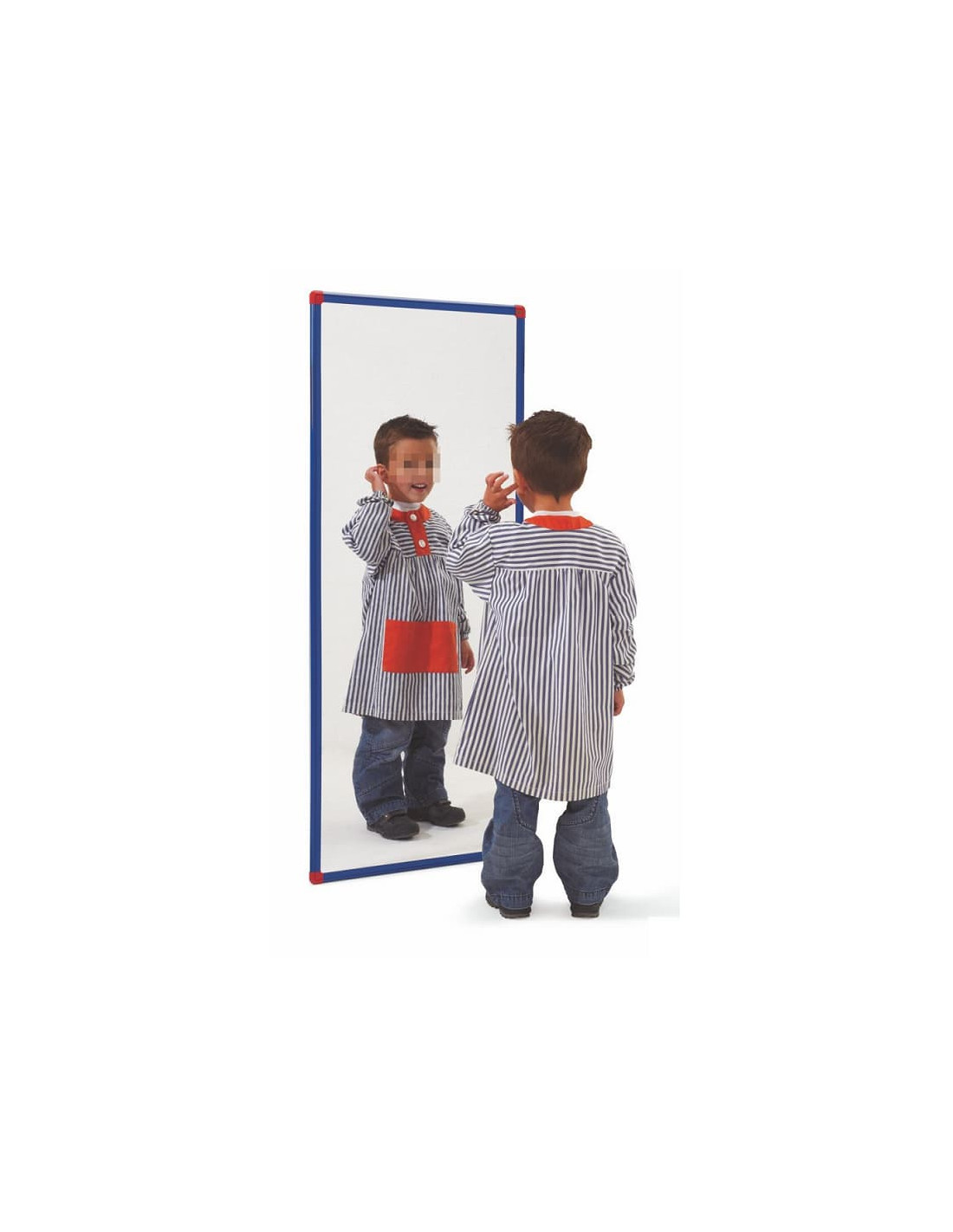 Espejo irrompible fabricado en metacrilato de metilo con base de aglomerado de 10 cm. Marcode aluminio. Medida 122 x 42 cm.