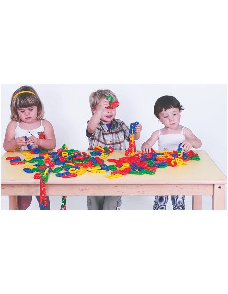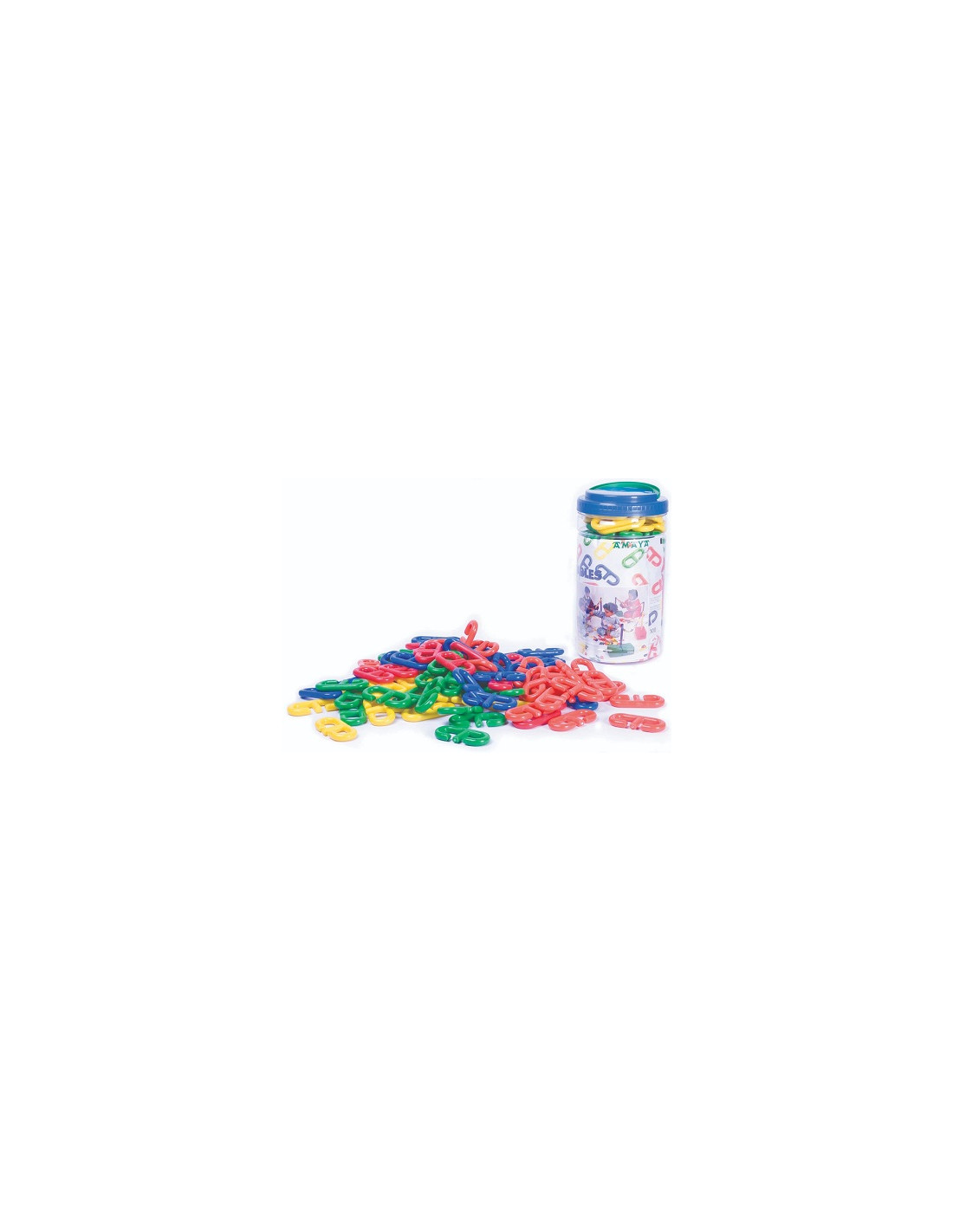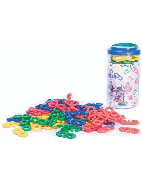 Bote con 100 anillas engarzables con las que puedes crear coloridas cadenas, trabajando la motricidad fina. Medida 77 x 35 mm.
