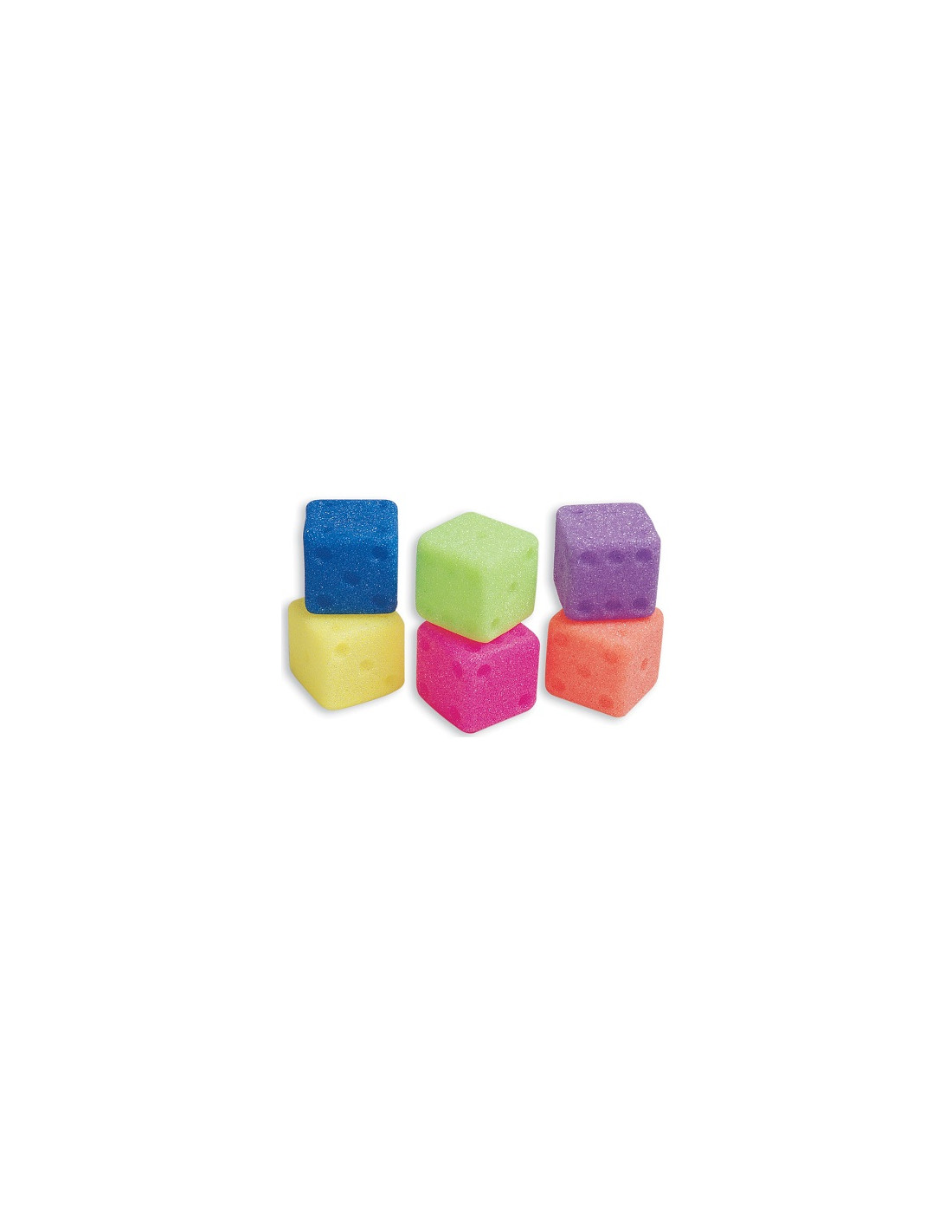 Dado grande en goma Eva con cascabel. Puntos ligeramente marcados para reconocer el valor con el tacto. Medida 15 x 15 cm. Colores aleatorios.