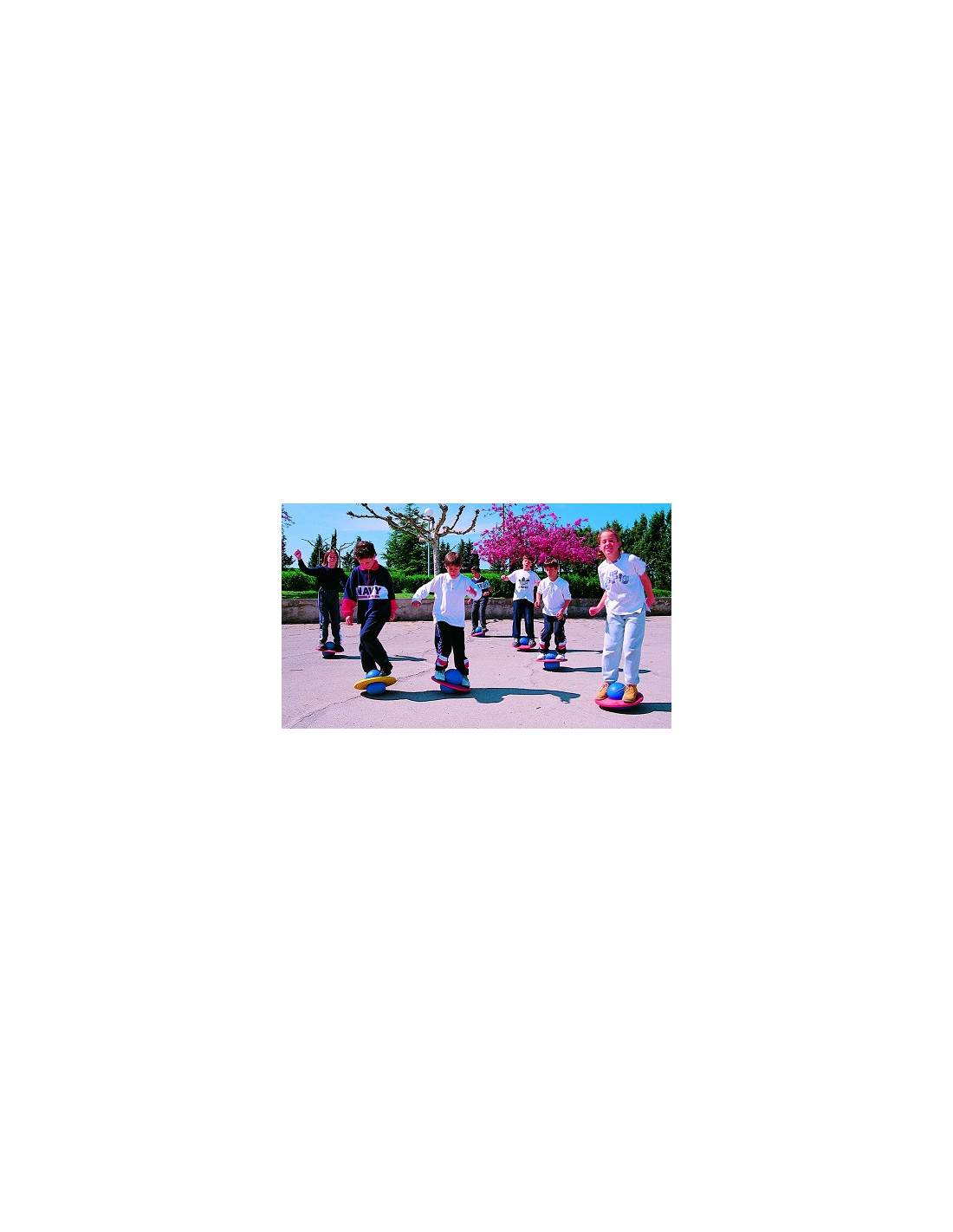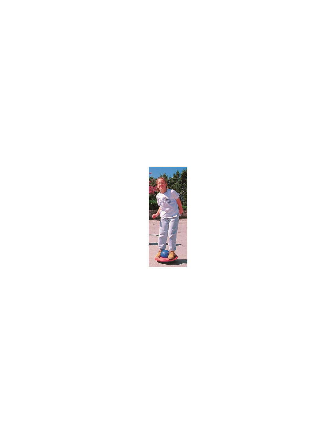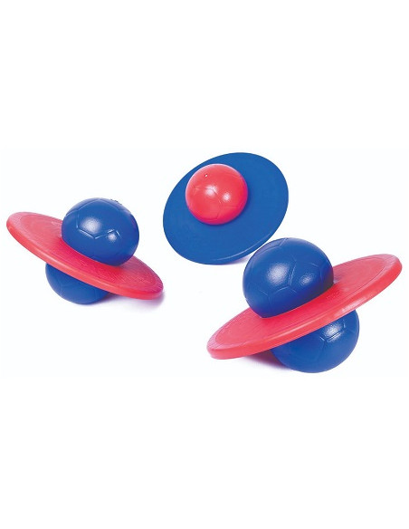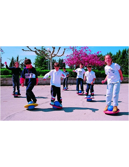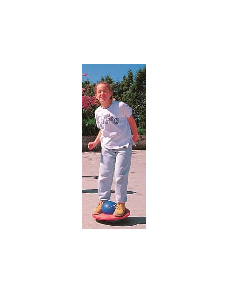 Plataforma de plástico rígido con una pelota de caucho para realizar ejercicios de equilibrio o saltos. Medida 37 x 25 cm.