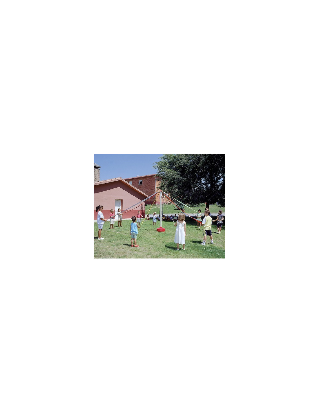 Mástil de plástico de 2 metros con base de 42 cm y 12 cintas de colores de 3 metros. Ideal para realizar juegos al aire libre.