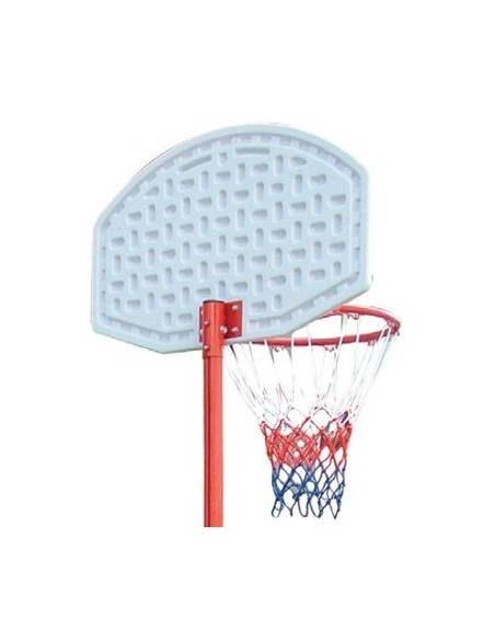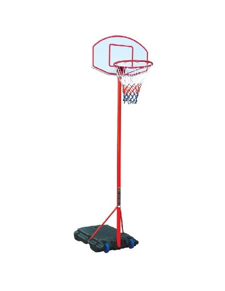 Canasta de baloncesto de altura regulable. Tablero americano. Base fabricada en PP, puede rellenarse con arena o agua. Medida 1,60 a 2,10 m.