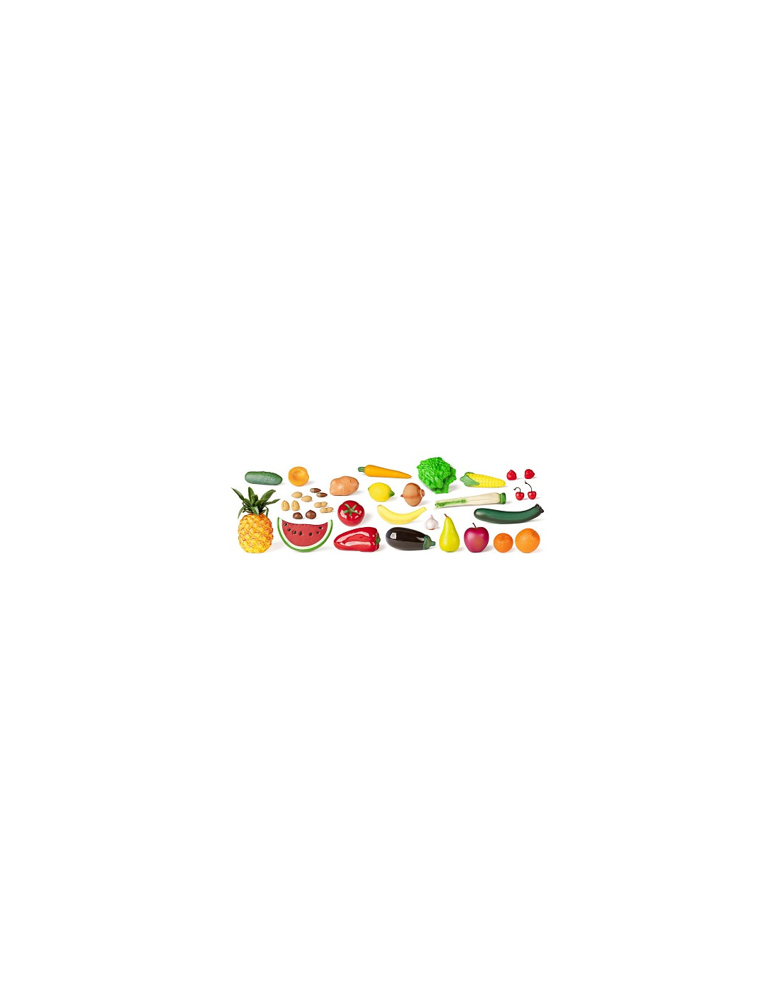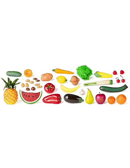 Juego de 35 piezas variadas de frutas, hortalizas y frutos secos en plástico realista