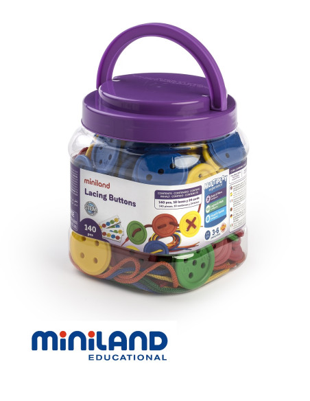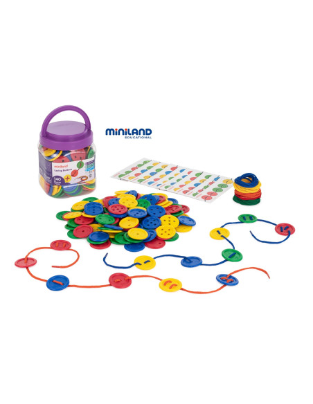Trabaja la motricidad fina ensartando los botones en las cuerdas.