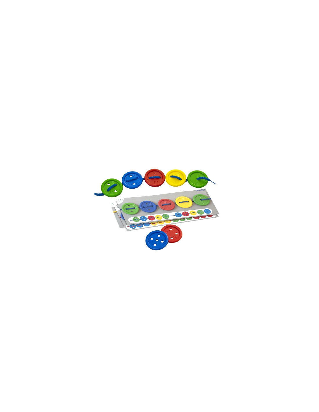 Trabaja la motricidad fina ensartando los botones en las cuerdas.