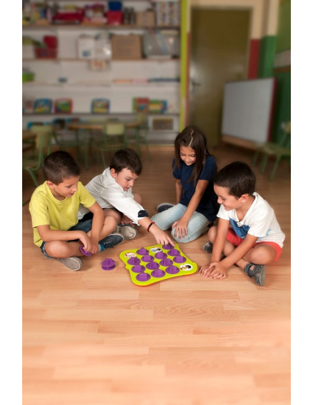 .Bandeja con tapa, 16 tapas y 4 fichas.