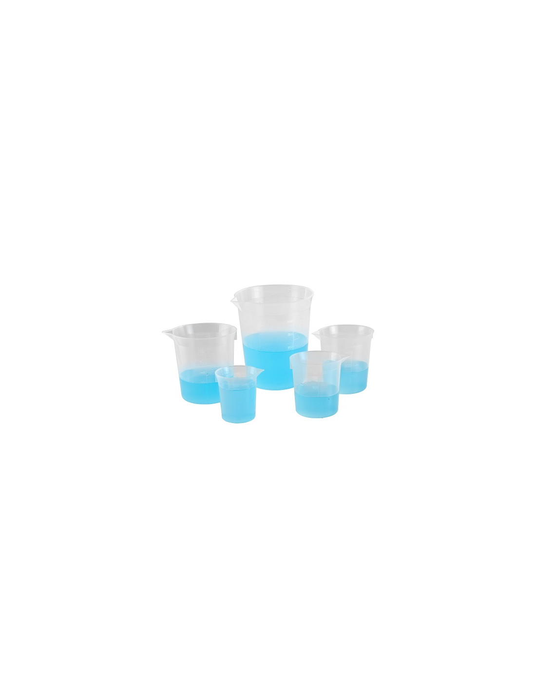 Set de 5 jarras graduadas con plástico resistente para trabajar la capacidad.
