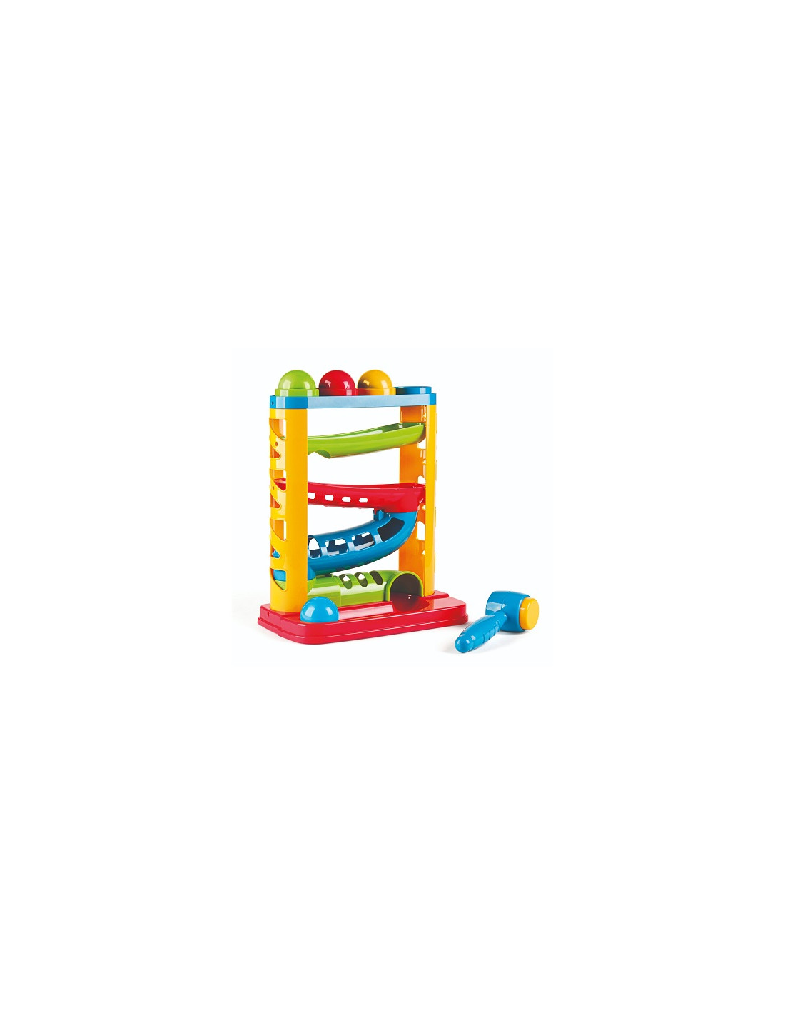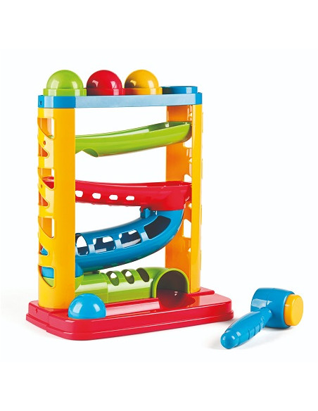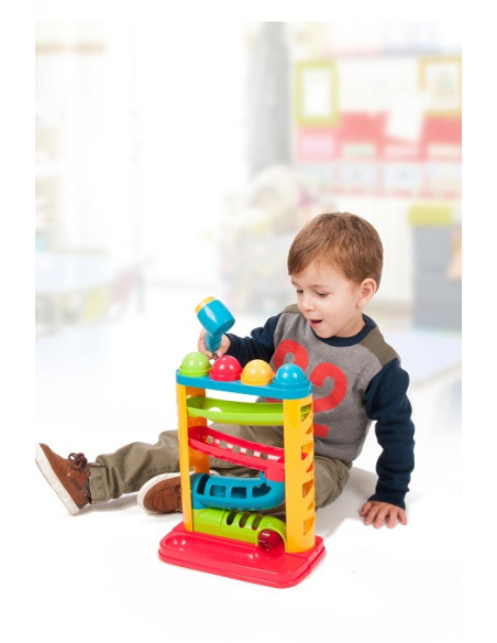 Coloca las bolas en la parte superior de la torre y golpearlas con el martillo con sonido.