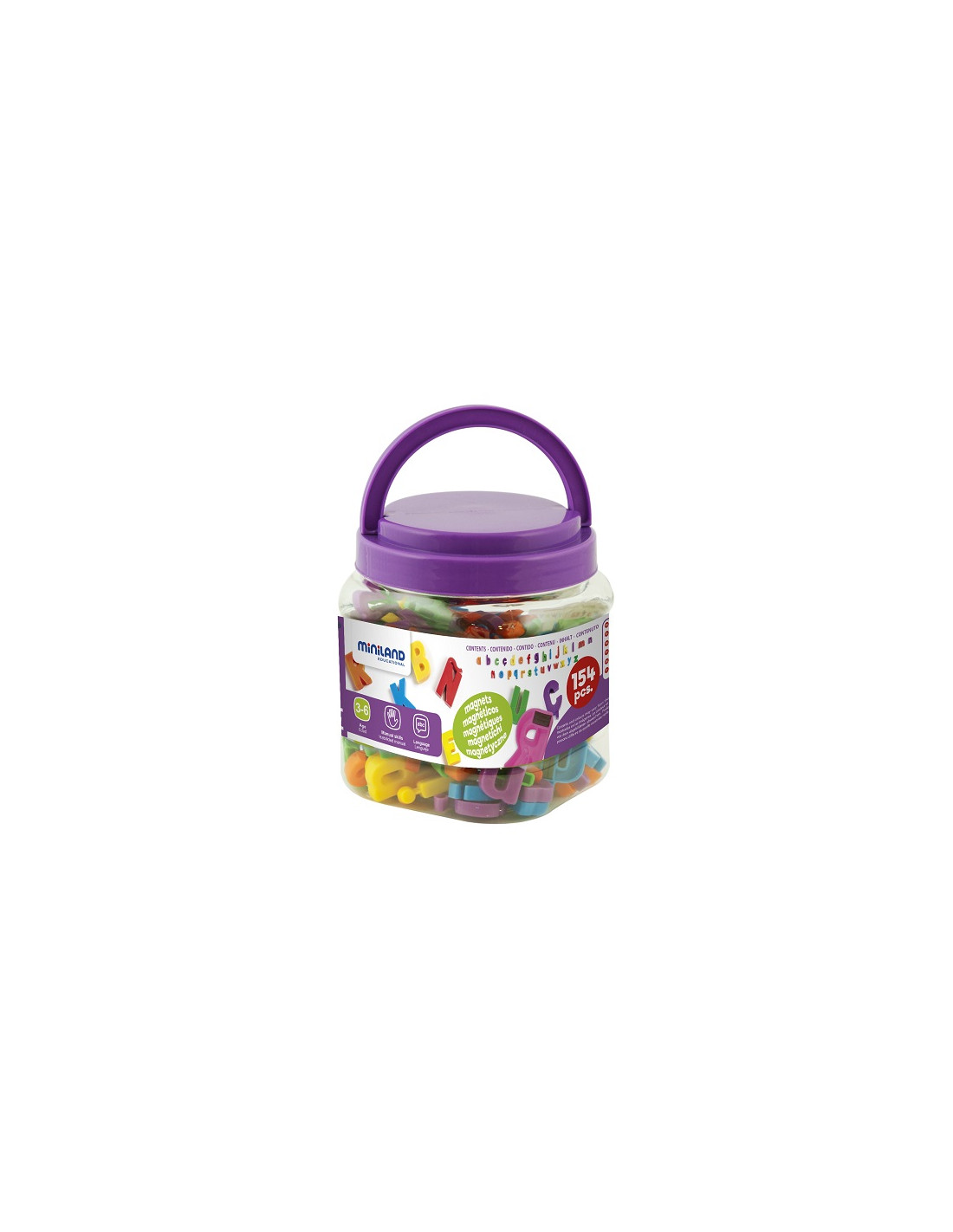 Completo juego de letras en minúsculas magnéticas.