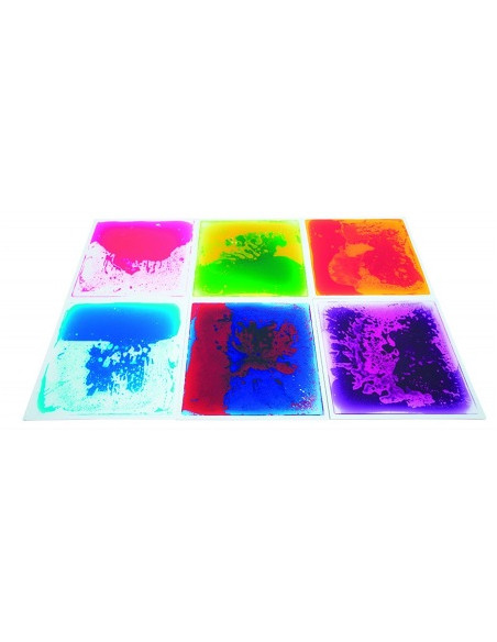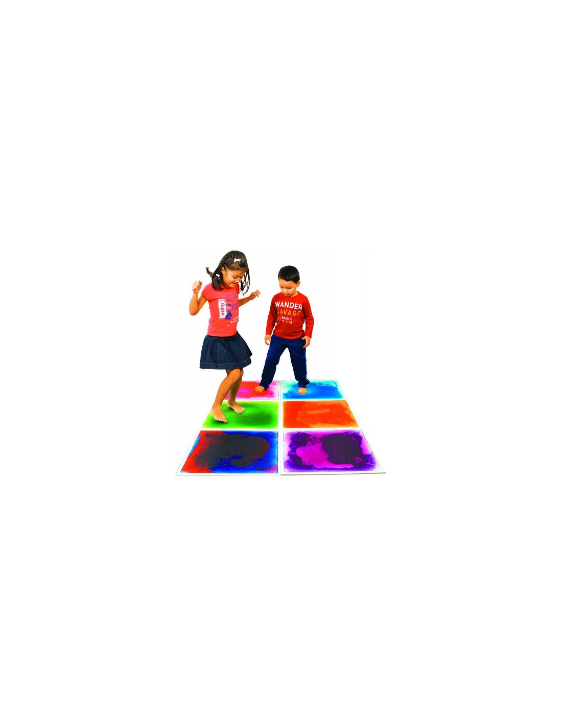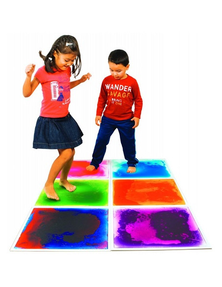 Suelo de baldosas rellenas de líquido sensorial que al pisarlas cambian de color, produciendo al pisarlas un agradable sensación. Estimulan el desarrollo sensorial y perceptual. Base antideslizante. Medida 50 x 50 cm. Pack de 6 baldosas en colores diferentes.