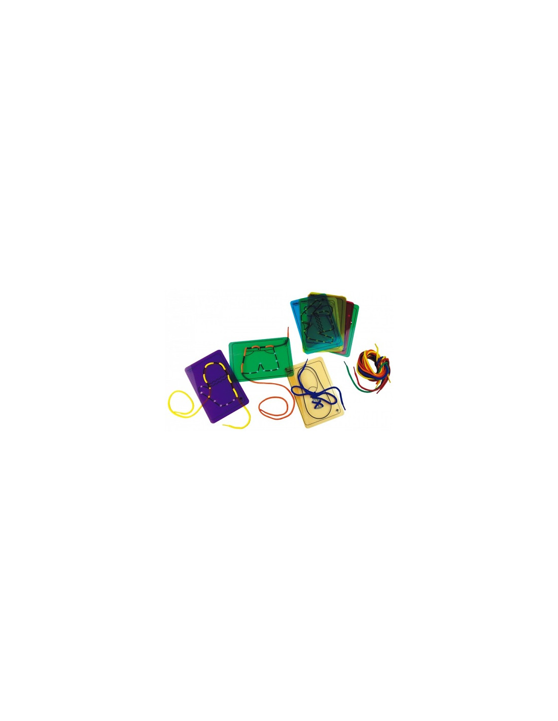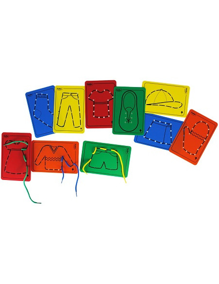 Fabricado en plástico rígido de colores, incluye un zapato para aprender atar cordones.