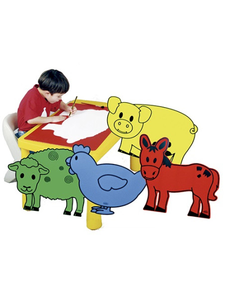 Animales gigantes con formas de animales en colores vivos, ideales para decoración o para plantillas de dibujo.