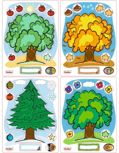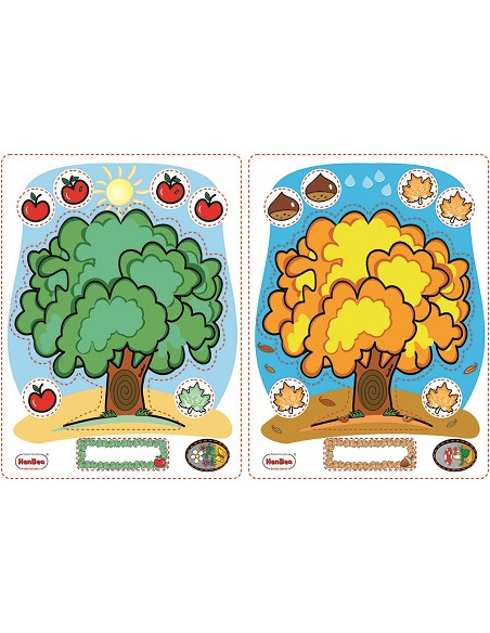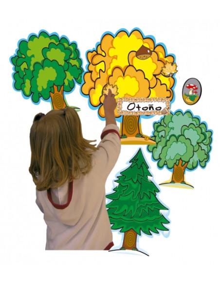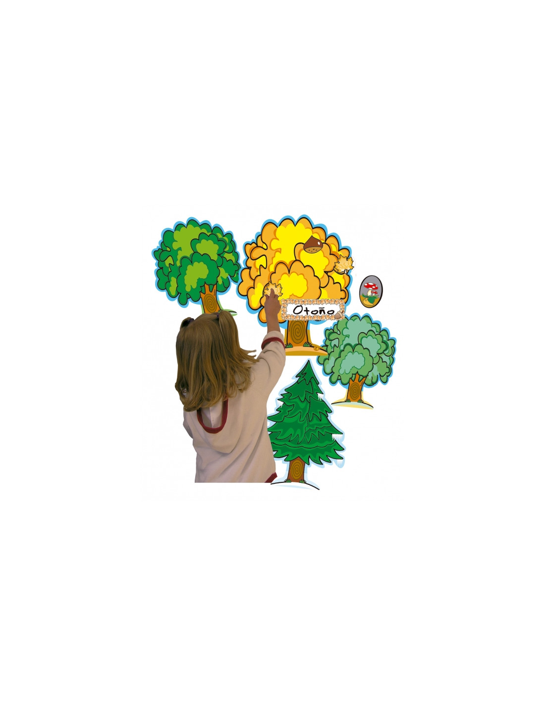Contiene 4 árboles, 4 tarjetas para escribir con rotulador y 28 figuras