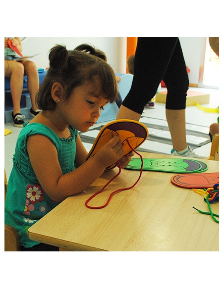 Contiene 6 plantillas de zapatos con cordones en 3 colores