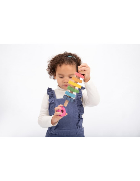 Perno giratorio de madera maciza de haya lisa con siete tuercas