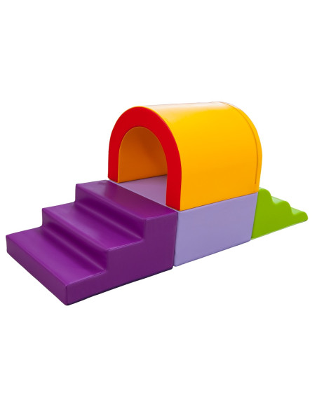 1 escalera de tres peldaños, 1 módulo de ondas, 1 módulo cuadrado