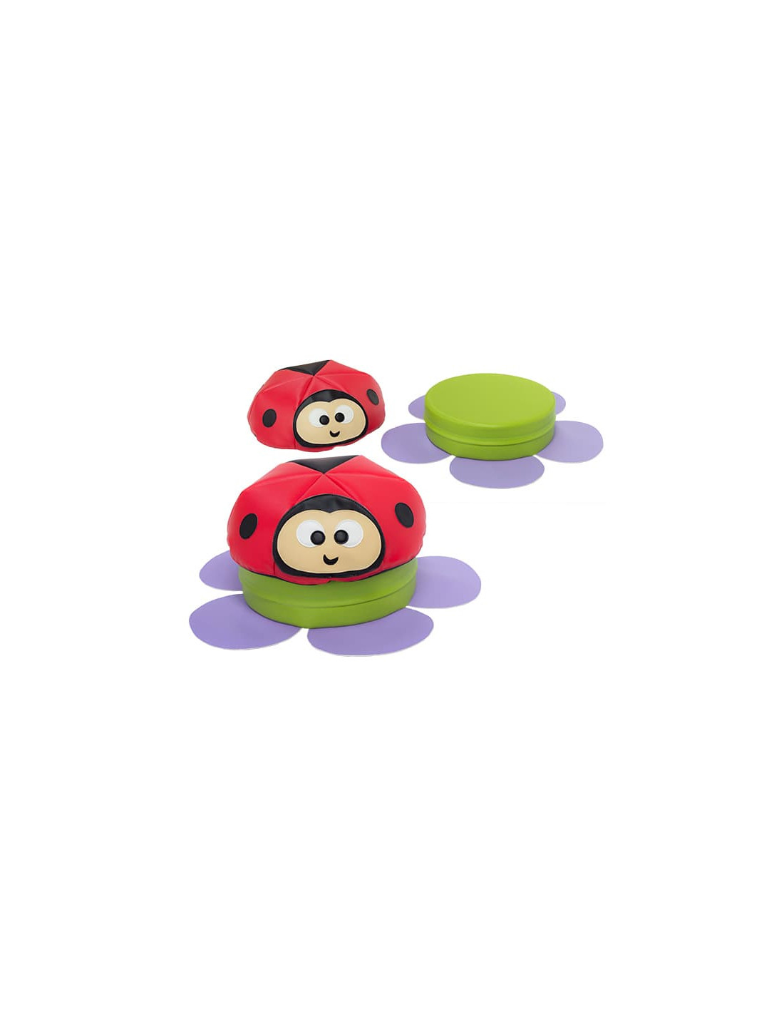 Cojin gigante de foam doble con forma de mariquita.