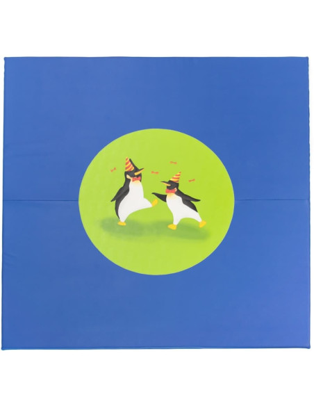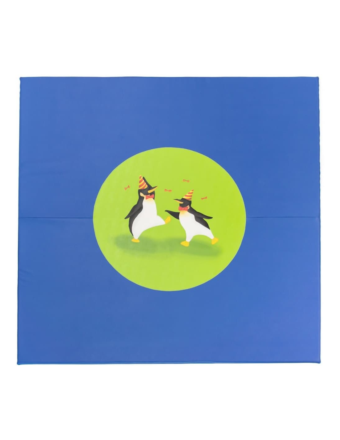 Alfombra cuadrada ilustrada con simpáticos pingüinos.