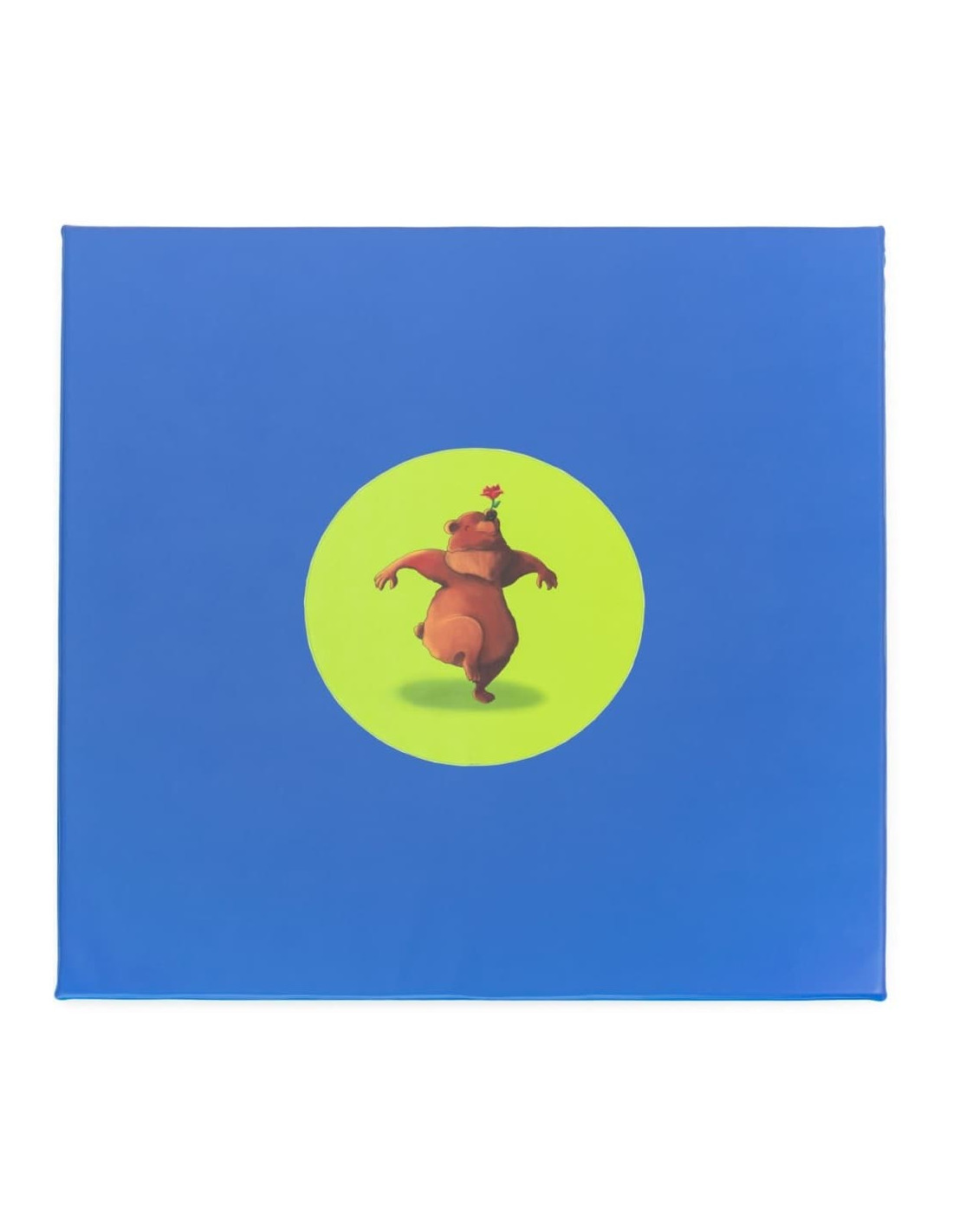Alfombra cuadrada ilustrada con un divertido oso equilibrista.