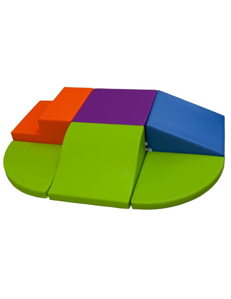 1 rampa, 1 módulo cuadrado alto y 2 módulo de cuarto de círculo.